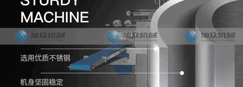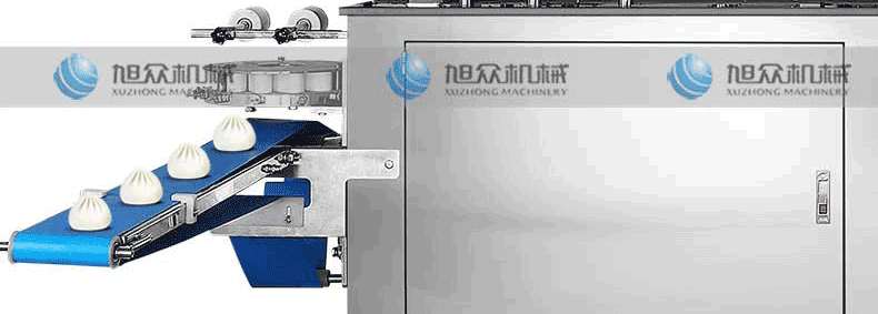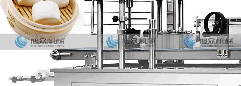 旭眾XZ-290AS型卷面式包子饅頭機是一款以壓面方式成型面皮,卷面方式包餡,仿手工捏花的一款機型,它整合了原有的二道壓面、成型機、出餡機、切刀為一體,有操作方便、占地面積小等優點。該機采用壓面成型面皮的方式,表面光潔,不傷面筋,不發熱,使產品口感滑順爽口,保持傳統手工工藝的風味,本機采用自動控制系統,品質穩定,壓面滾筒采用性能好的食品級材料UPE加工而成,且加大了滾筒直徑使得在壓面過程中面皮及重量的精度,規格,長度,大小,面皮的厚度皆可調整設定。