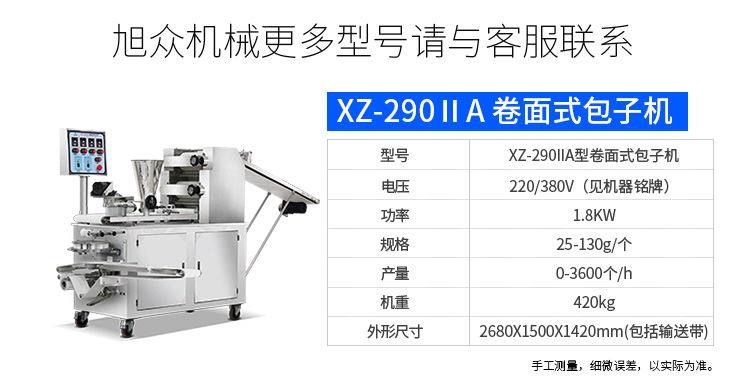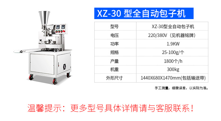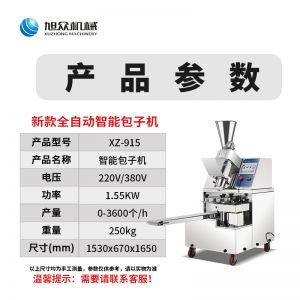 旭眾牌XZ-915全自動包子機(jī)體積小重量輕,外殼及接觸食品部分均由不銹鋼制造,外觀精美耐用;采用三變頻無極變速調(diào)控,生產(chǎn)性能穩(wěn)定。設(shè)計先進(jìn),結(jié)構(gòu)簡單,操作方便。包子機(jī)三大特色:
