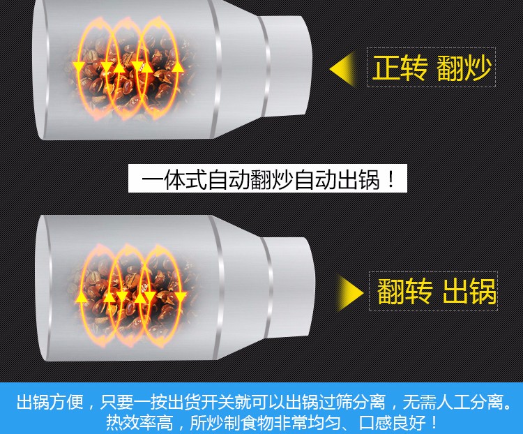 9.豪華炒貨機結構合理,操作簡單,熱效率高,所炒制食物非常均勻、口感良好!