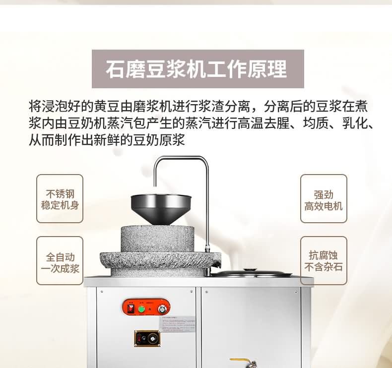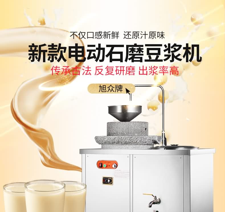 旭眾牌XZ-350電動石磨豆漿機、石磨豆腐機,采用古老石磨的原理,來制作現磨豆漿和豆腐。該機操作簡單,方便快捷,是傳統制作豆腐技術和現在科技的結合,實現豆漿制作的新突破,讓人輕松享受到純正順滑的豆漿。石磨豆漿機、豆腐機,廣泛適用于飲品店、茶餐廳、面包店、賓館酒樓和單位食堂等使用。