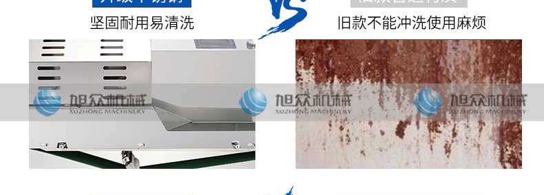 2、機器與食品接觸部位為SUS304,符合食品機械標準,并采用防水設計,輸送部分、切刀部分可沖水清洗;