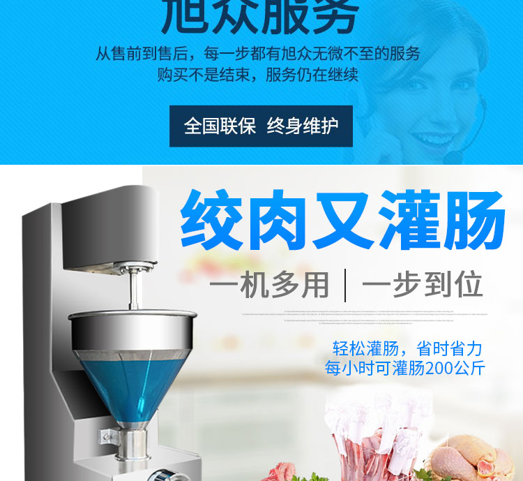 灌腸機是加工制作臘腸、香腸等含顆粒的專用機械,本機外觀選用不銹鋼材料制造,外型美觀、體積小、噪音低、用電省,生產(chǎn)效率高,操作方便。