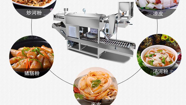高效節能河粉機,改機一機多用,可根據需求定制河粉、涼皮、拉腸粉、豬腸粉。全部采用進口不銹鋼制造,流線舒暢、整潔美觀、經久耐用