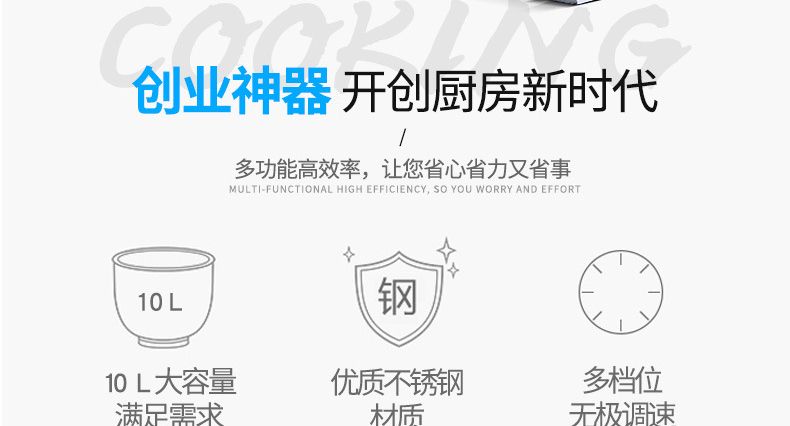 該機外形美觀、操作方便、工作效率高。既適合于賓館、酒樓、餐館、食品加工廠及單位食堂制作食品,也可供制藥、化工原料等廠礦單位作調(diào)劑原料之用。