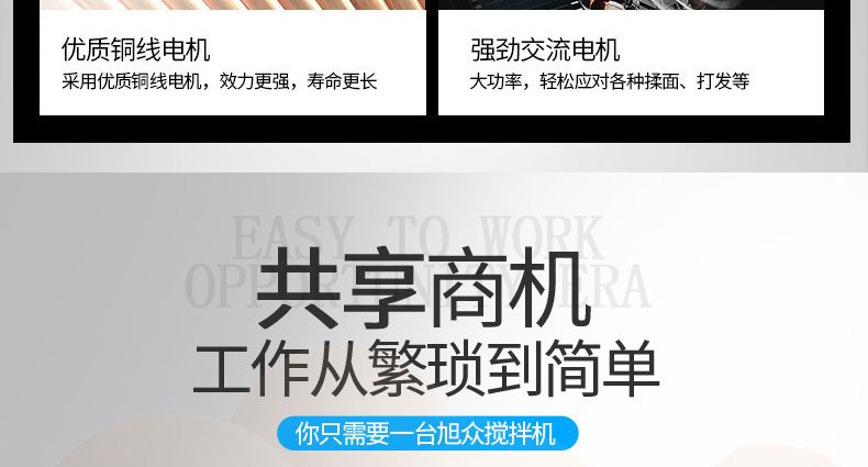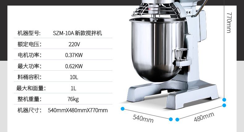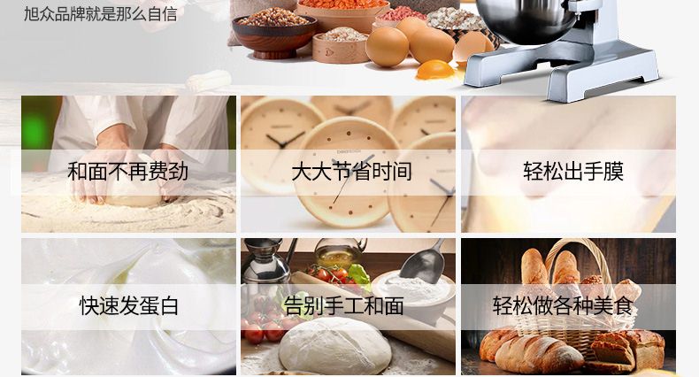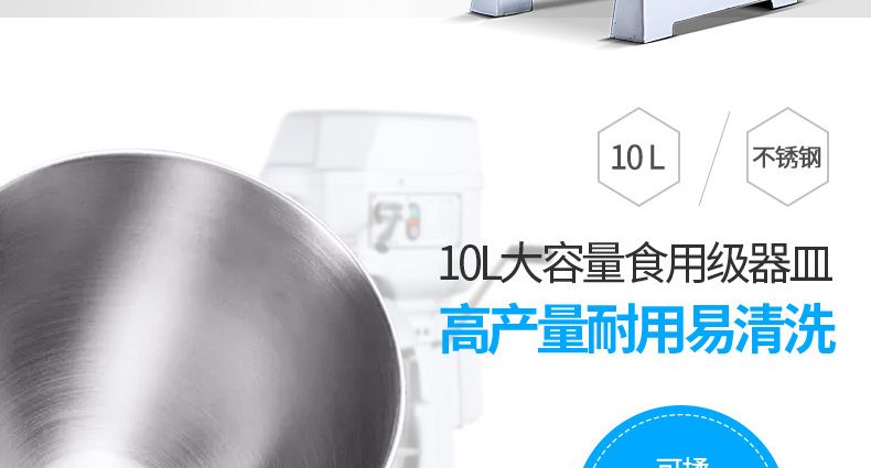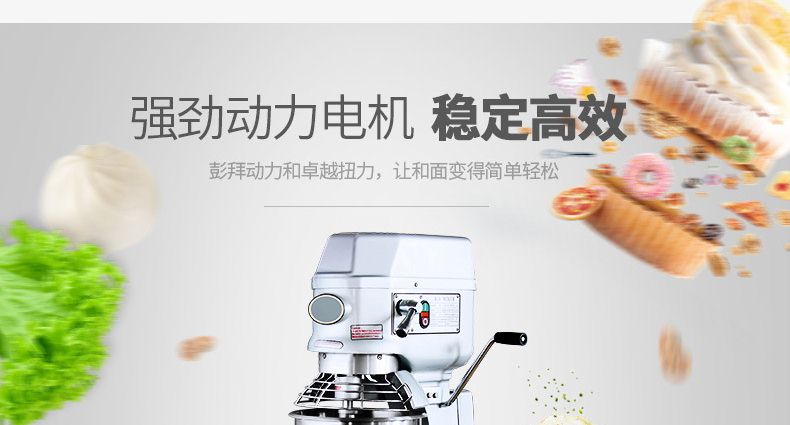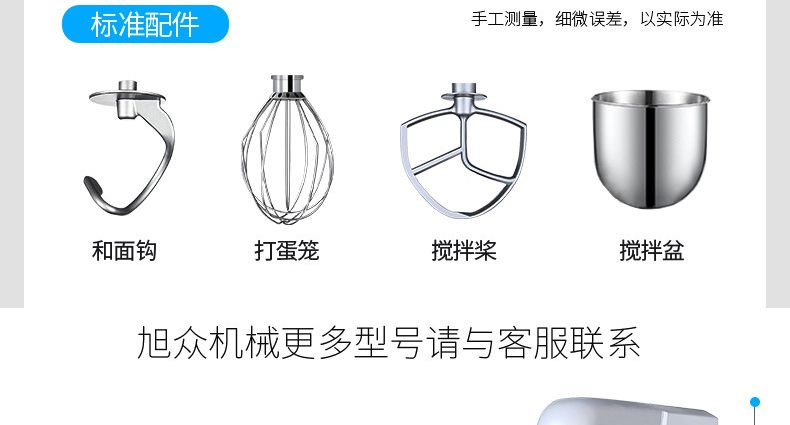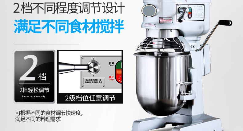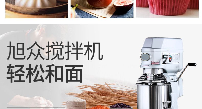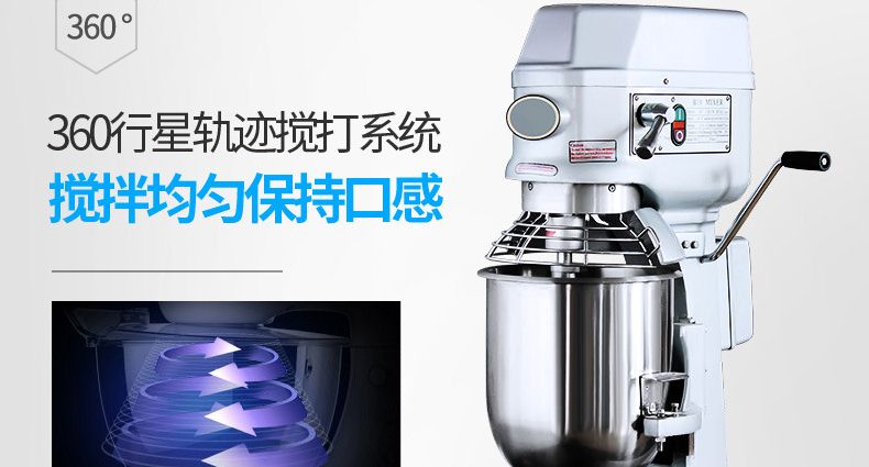 旭眾牌新款A(yù)系列食品攪拌機運用行星運動原理,攪拌器在料桶內(nèi)做行星運動,從而使食品充分混合,具有和面、攪和碎狀。粉狀及液狀食品等多種功能,機器工作平穩(wěn),設(shè)有防護罩,安全可靠,設(shè)有多級轉(zhuǎn)速,并配有多種攪拌器,用戶可按不同要求選擇適當(dāng)?shù)乃俣群蛿嚢杵鳎詫崿F(xiàn)和面、拌餡、打蛋等功能。機內(nèi)凡接觸食物的零部件均采用不銹鋼制造或經(jīng)特殊表面處理。符合食品衛(wèi)生標(biāo)準(zhǔn)。