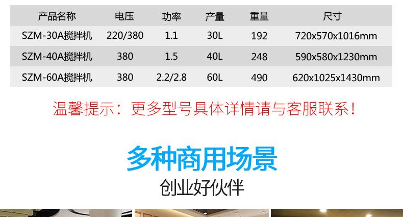 型號 | SZM-10A攪拌機 | SZM-20A攪拌機 | SZM-30A攪拌機 | SZM-40A攪拌機 | SZM-60A攪拌機 |