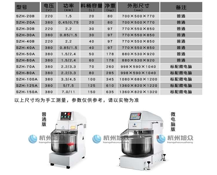 | SZH-20B | 220V | 1.5kw | 20L | 80kg | 700×500×770mm | 普通 |