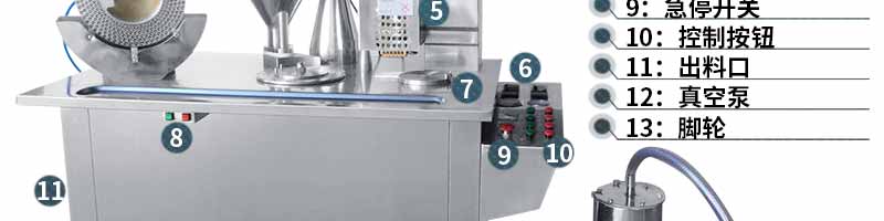 本機由送囊調頭分離機構、藥料充填機構、鎖緊機構、變頻調速機構、氣動控制和電器控制系統、保護裝置等部件以及真空泵和氣泵附件組成。國產或進口機制膠囊都可適用,成品合格率達到97%以上。
