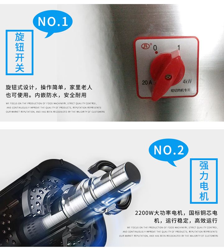 XZL-32A單絞機吸取同行之優點,改進新型絞肉切肉機械,它能切豬肉、羊肉、牛肉、魚及其它各種肉類、所切肉片厚度適中切片效率高,是餐廳、賓館、酒樓、單位食堂等絞肉切肉的理想機械,該機外形獨特,操作方便,維修簡單,工作效率高,在同行業中處領先地位,與食物接觸部分均采用不銹鋼制造符合食品衛生標準。