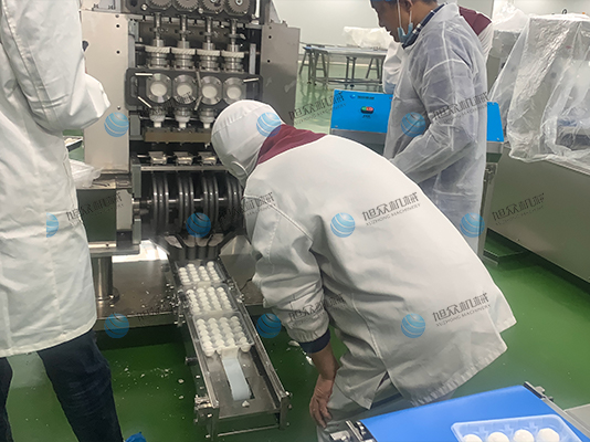 全自動 多功能多頭型湯圓成型排盤機客戶使用現(xiàn)場!