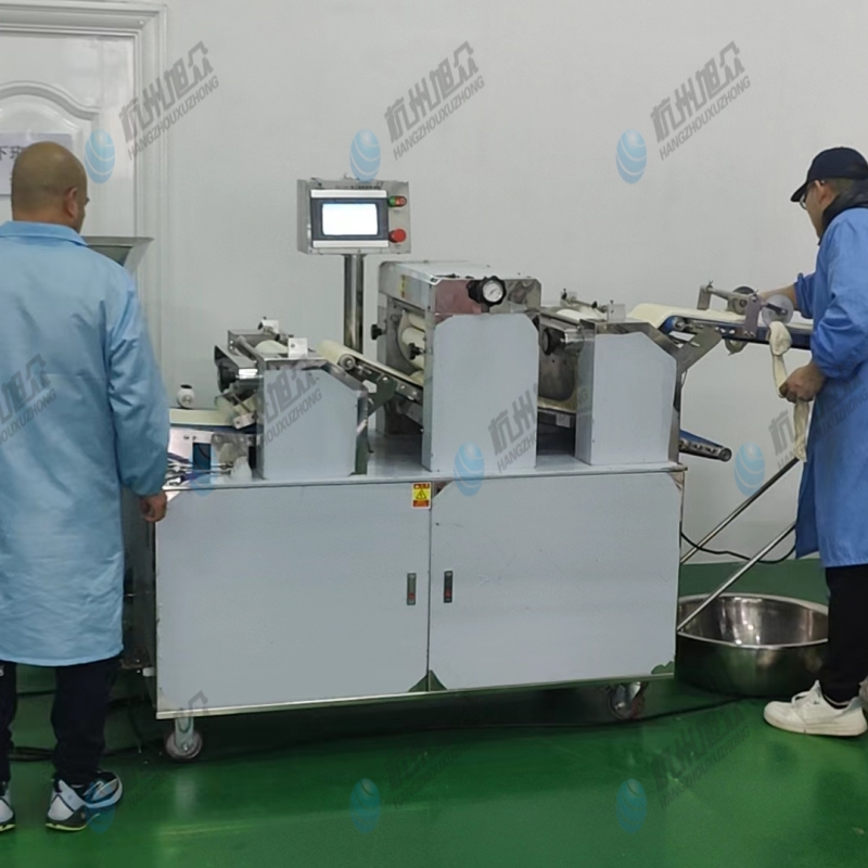 XZ-15C三道搟面酥餅機(jī)去蕭山調(diào)試做110克梅干菜肉餅