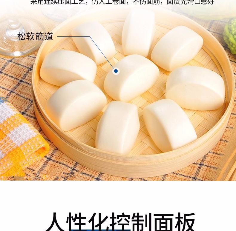 ?采用連續壓面制作工藝,仿人工卷面,不傷面筋,使面皮有光滑、品質穩定,口感好;