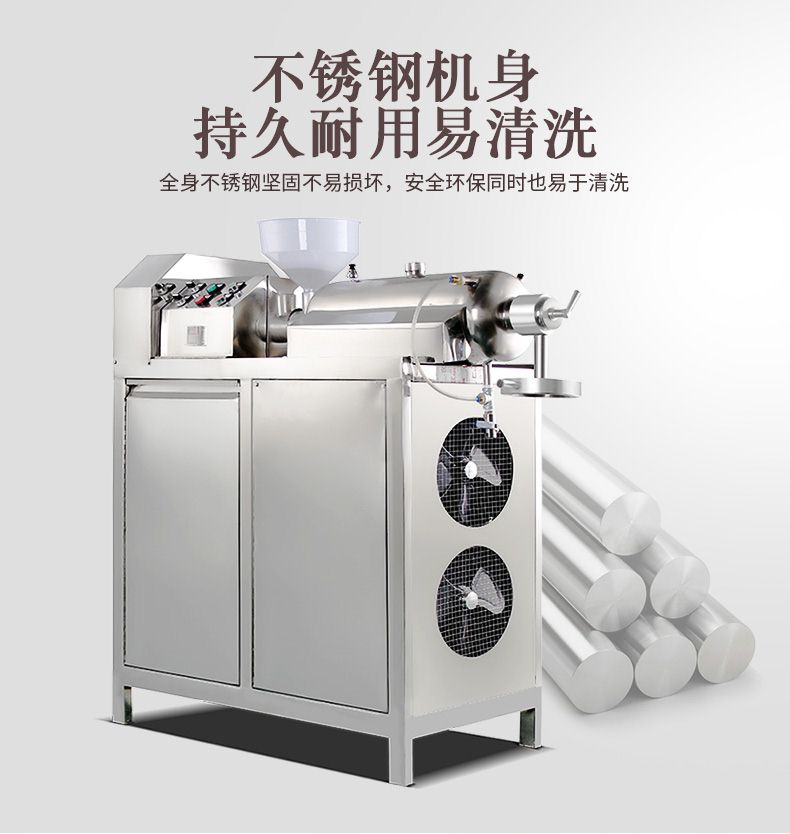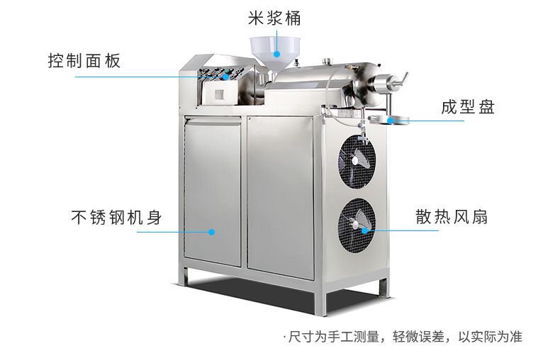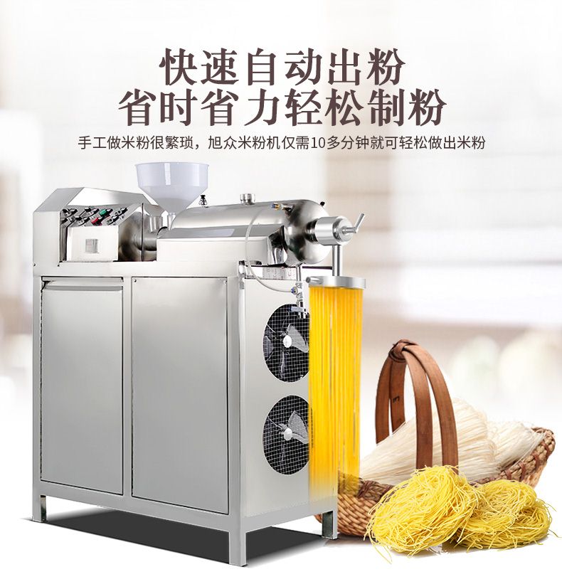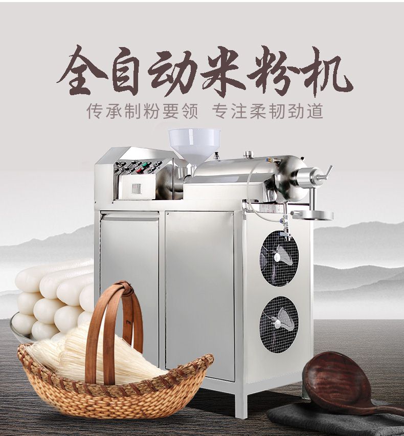 改進型米粉、米線專用機,裝有自動溫空裝置,整個生產過程設備均在恒溫狀態下運行,自動化程度高,操作簡單,l人即可生產。可生產米粉、米線、桂林米粉、過橋米線、年糕等產品。各種形狀都可生產(圓、扁),加工食品外表光滑,厚薄、寬窄、粗細均勻可調,筋軟適度,有彈性,口感柔軟、味道純正。