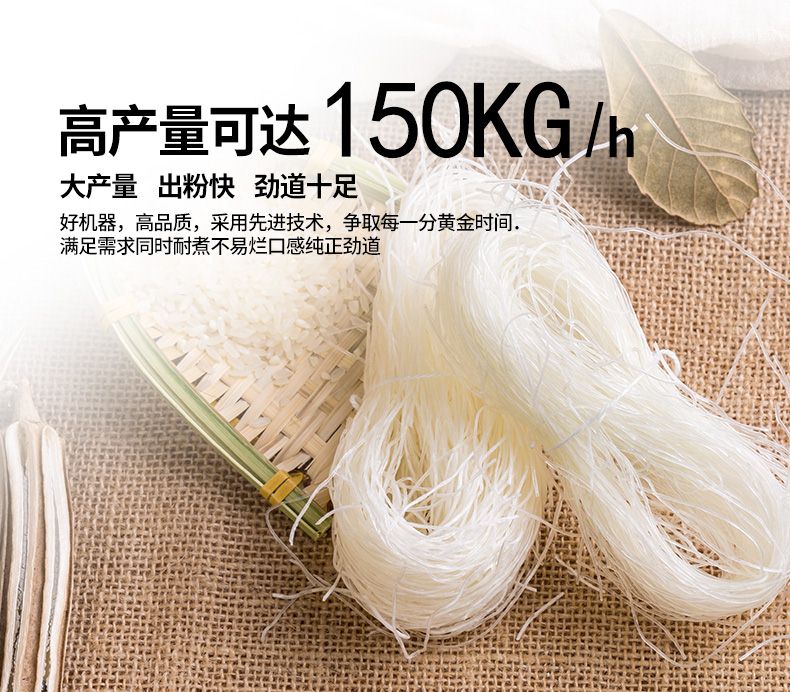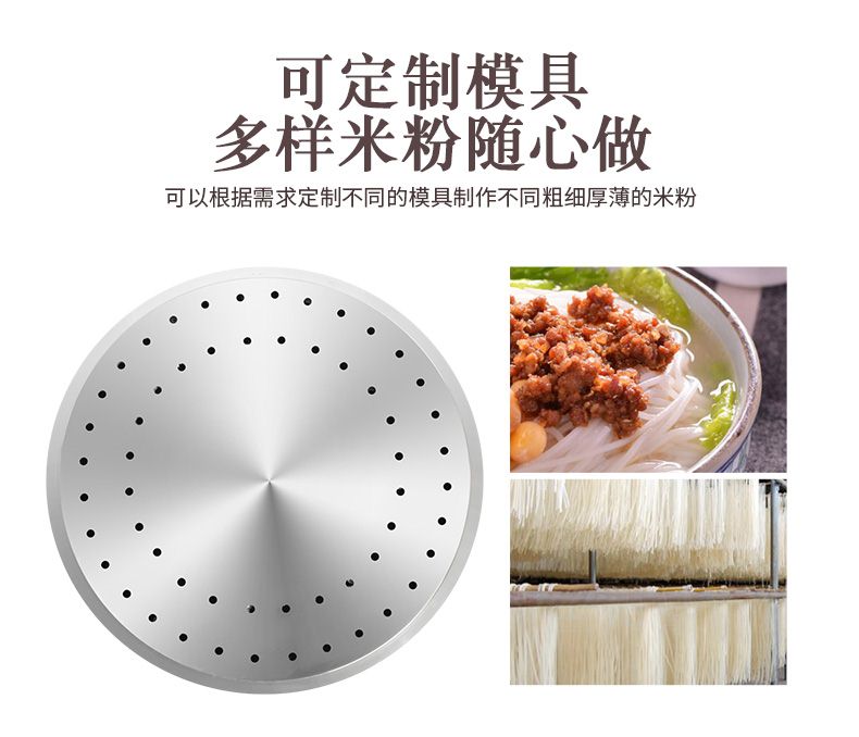 ◆ 米粉機生產多樣性可生產米粉、米線、粉絲、粉條、年糕、玉米面條、各種雜糧粉絲、各種面條、雜糧面條、彩色面條以及以紅薯、玉米、大豆、蠶豆等制成淀粉為原料的等多種食品而且每種食品厚薄、粗細等規格可根據需要任意調整。