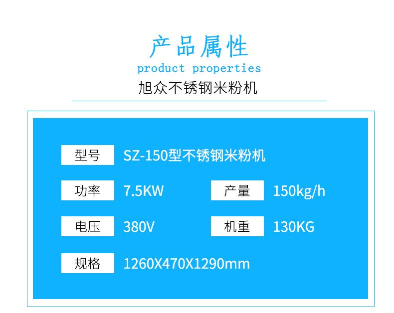 名稱SZ-150不銹鋼米粉機 電源380V 功率7.5kw 產量150kg/h 尺寸1260×470×1290mm 重量130kg 規格 其他