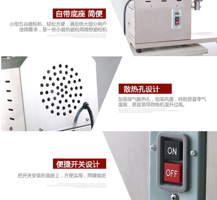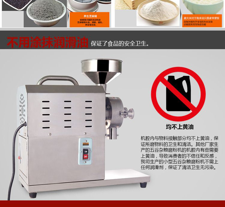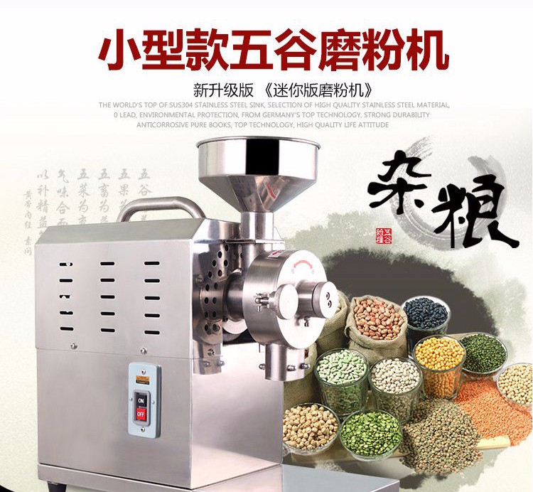 HK-812型不銹鋼五谷磨粉機,在860型磨粉機的成功經驗上,進一步研發生產銷售的專業五谷磨粉機,812型體積比860的要小了一些,磨片直徑為120毫米,配備的電機為廠家專門定制的1.5KW全銅電機,動力夠!力氣足!產量也可以達到每小時10-30公斤,能將各種糧食、中藥材等物料研磨成50~200目的均勻粉末。滿足絕大部分用戶使用要求,是一些小磨坊磨粉用理想磨粉機!
