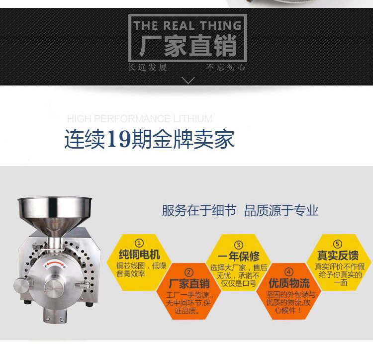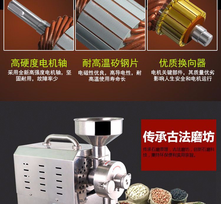 HK-812小型磨粉機,全銅優質電機,動力夠!力氣足!產量也可以達到每小時10-30公斤,能將各種糧食、中藥材等物料研磨成50~200目的均勻粉末。