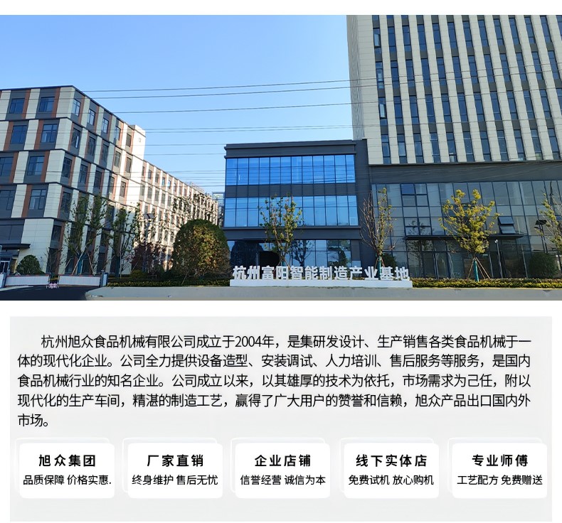杭州旭眾機械設備有限公司是一家集科研開發,生產設計,營銷服務為一體的現代化生產企業。現代化生產車間,精湛制造技術,所產機械歷經市場重重考驗,不斷贏得海內外客戶的贊譽。