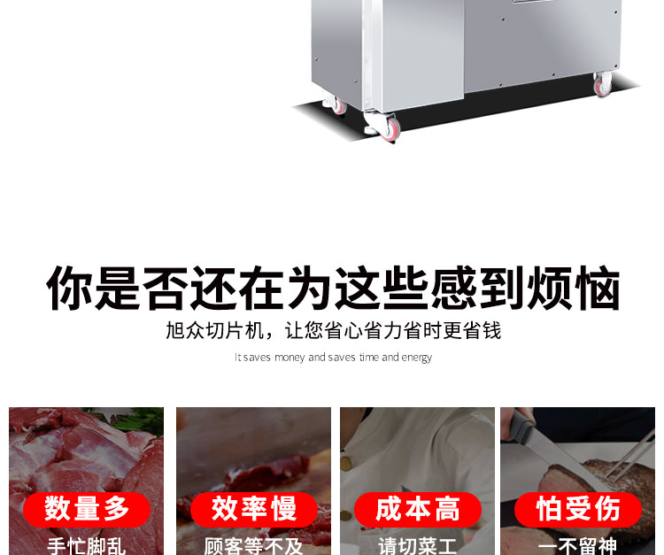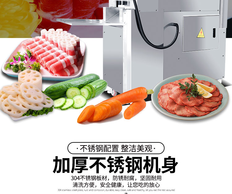 5.旭眾牛羊肉切片機(jī)憑借其外觀,高效率加工能力,簡(jiǎn)單的操作,及超低的故障率,備受廣大客戶的好評(píng),成型美觀