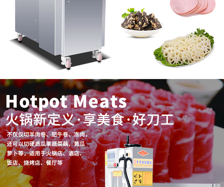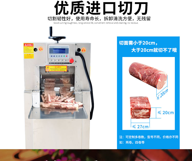 2.可同時(shí)切制2卷(4卷)肉料或2卷(4卷)肥牛,適合大中小型肉片加工企業(yè)使用