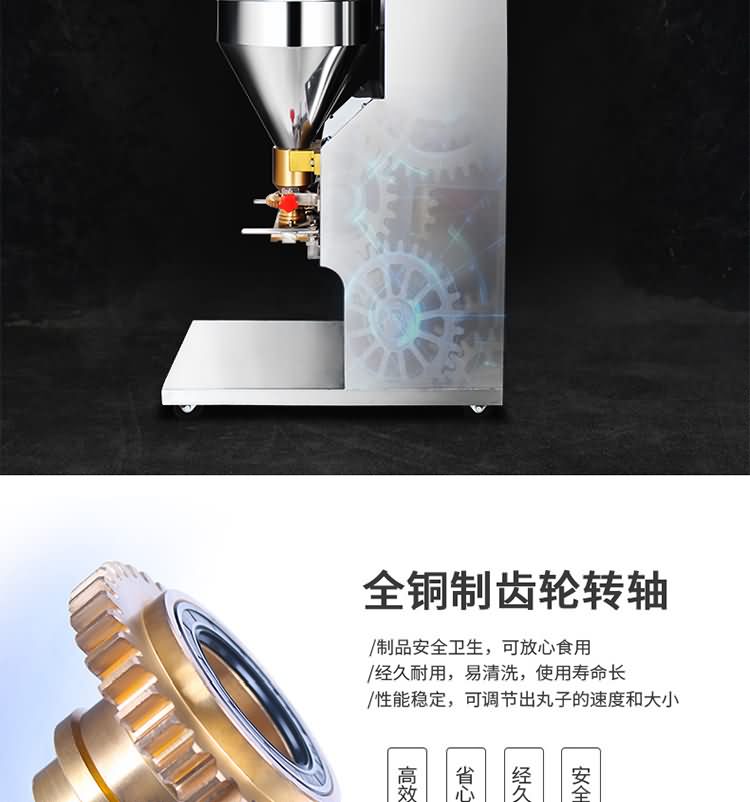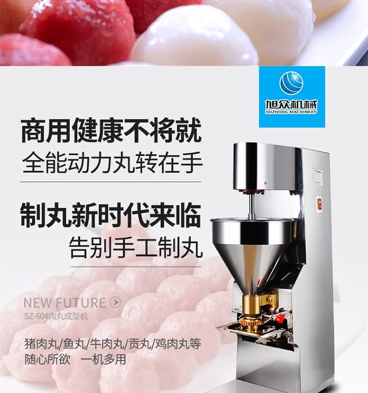 SZ-604肉丸成型機(jī),肉丸成型機(jī)采用不銹鋼材質(zhì),丸子直徑可達(dá)15-35mm,可以制作各類爽脆,有韌性、有彈性的豬肉丸、魚丸、牛肉丸、貢丸、雞肉丸等