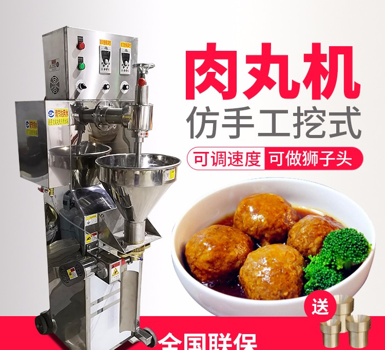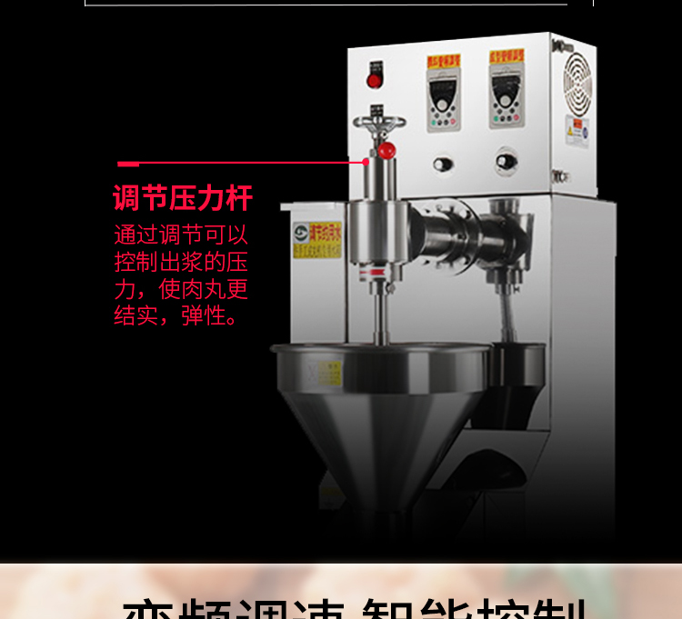 XZ-607A挖式變頻肉丸成型機,仿手工(變頻挖式)成型機是一款完全模擬丸子手工用匙子成型的設備,完善了傳統切刀式成型機那種不可避免的高密度和外表皮粗糙問題。做出的丸子具有密度小、圓度好、外表皮光滑的特點,特別在做貢丸和牛肉丸這些有肉筋的丸子時是目前市面上接近手工口感的丸子成型機。本機采用雙變頻調節,使操作更方便,生產過程更能保持漿的質量。標配范圍:20-32mm,大的可定做55mm以內規格,價格不同。