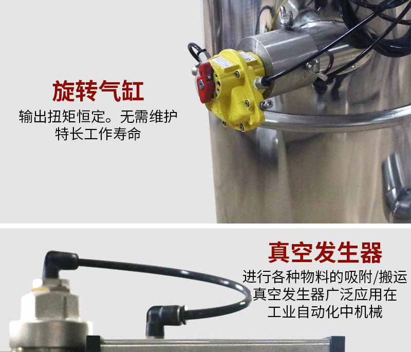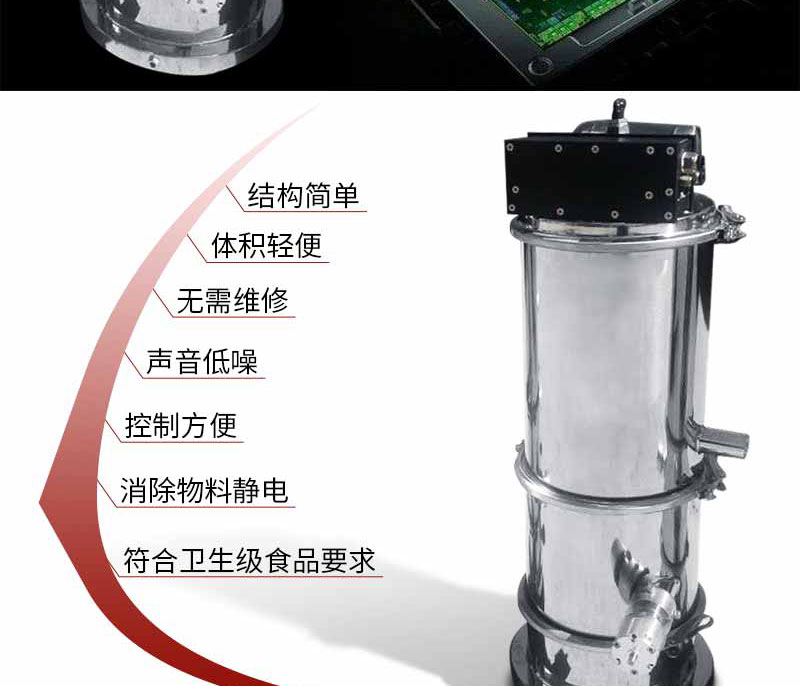 氣動真空上料機是利用壓縮空氣通過真空發(fā)生器產(chǎn)生高真空實現(xiàn)對物料的輸送,不需要機械式真空泵,具有結(jié)構(gòu)簡單、體積小、免維修、噪音低、控制方便、物料靜電和符合gmp要求等優(yōu)點。真空發(fā)生器產(chǎn)生的高真空,使被輸送的物料完善了分層現(xiàn)象,保證了混合物料成分的均一性,是壓片機、膠囊填充機、干法制粒機、包裝機、粉碎機、振動篩等機械自動上料的不二選擇設(shè)備。