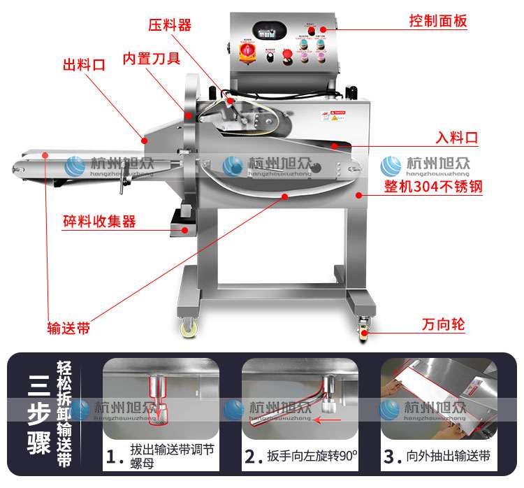 l 出料口自帶輸送帶,切好的物料擺放整齊,無需排列可直接裝盤;