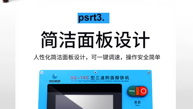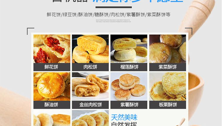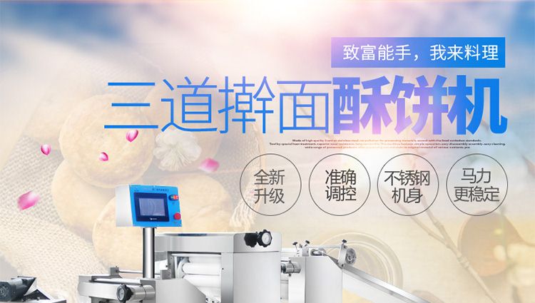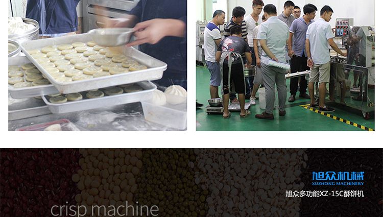 XZ-15C三道搟面酥餅機,仿手工制作面食產品的機型,占地面積小,重量輕,運用搟面杖壓面和打擊面團,以保證高面筋性和面帶的密度,并綜合考慮面食的口感而研發??缮a東北糖酥餅,東北大香酥餅,蘇式月餅,芝麻餅,鮮花餅,老婆餅。購機免費提供工藝技術