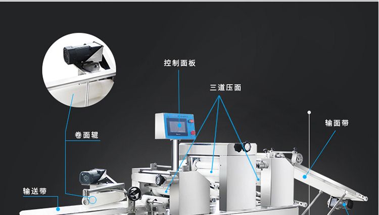 ?生產速度快,效率高,生產流程流暢,各環節都輔以電控設備控制,不會出現堵面,破酥等現象;