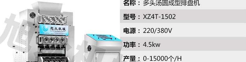 旭眾牌XZ4T-1501型多功能湯圓成型排盤機是一款只要將面團放入進料口,開機便可自動搓圓、成型的設(shè)備,制品不易變形,工作效率高,相當于15-20個工人同時手工制作湯圓,并可自動排盤,真正的低投入、高收效、省錢省工。