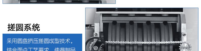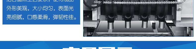 ◆采用圓盤擠壓搓圓技術(shù),結(jié)合面點工藝要求,使得制品外形美觀,大小均勻,表面光亮細膩、口感柔滑,彈韌性佳;