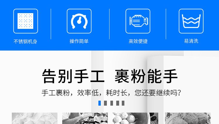 小型裹粉機(jī)用于裹芝麻、麻薯、糯米糍、干吃湯圓等熟糯米制品裹粉滾圓。