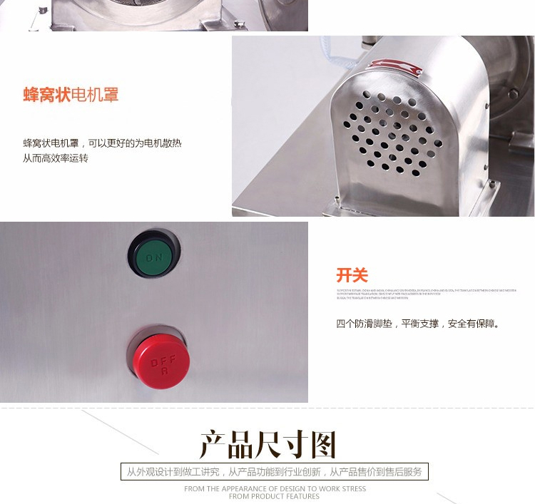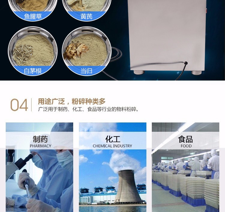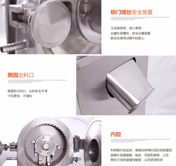 萬(wàn)能粉碎機(jī)主要適用于制藥、化工、食品等行業(yè)的物料粉碎。禁用于粉碎易燃易爆品。禁止用于金屬物品的粉碎。不適用于大塊物料的粉碎。不適用于粉碎含水量太高、含油量太高的物料,因?yàn)榉鬯楹蟪鏊蛘叱鲇停纬舍u狀物,會(huì)堵塞篩網(wǎng),影響出料,造成出料不暢,甚至卡死、悶機(jī)現(xiàn)象。本機(jī)不適用粉碎所有粘性物料,也不適合發(fā)熱后變軟和變粘的物料。