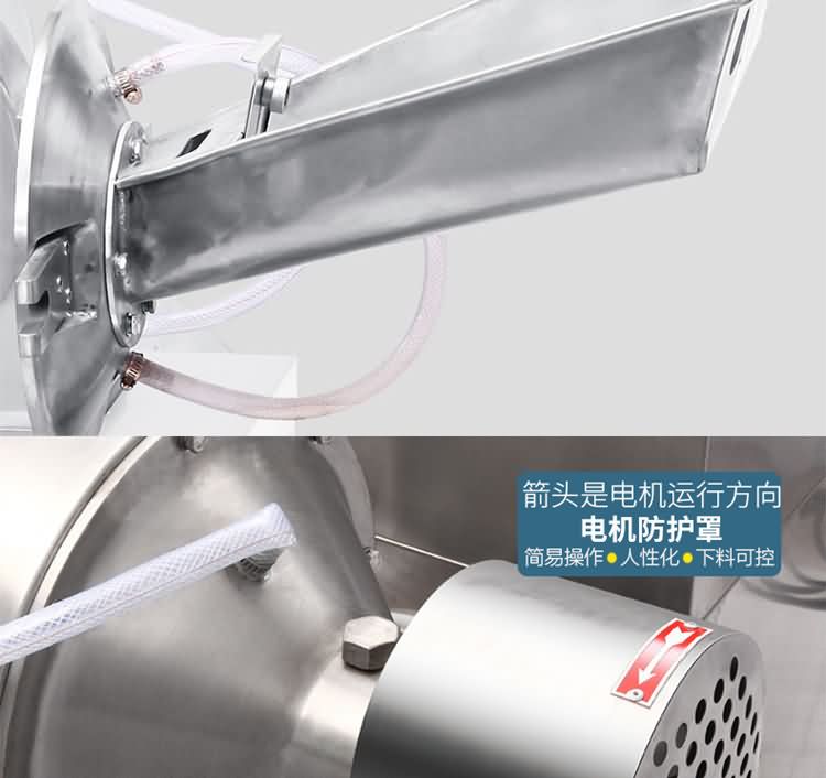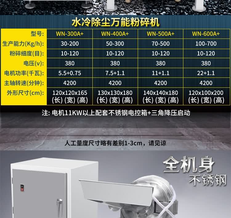 5、因為水冷式的結構決定了篩網面積縮小,只有普通齒盤式粉碎機篩網的40%左右,所以水冷粉碎機的出料更慢,產量降低,這點請客戶注意。