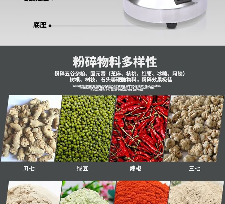 1、功能:可粉碎各種藥物物品等,成品為粉末。