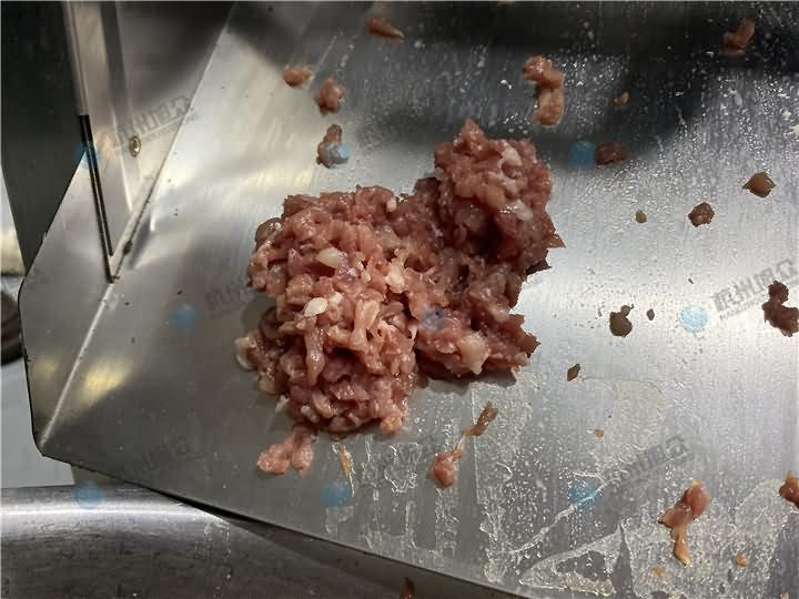 旭眾XZ-7單切機(jī)一次切肉片,二次切肉絲,三四次切肉粒,想要切肉粒的選單切機(jī),想要絞肉切肉都要的選擇絞切機(jī),那么我們來(lái)看看單切機(jī)切肉粒的效果: