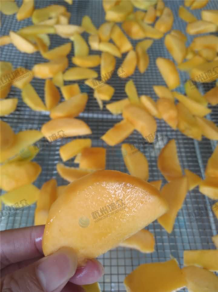 黃桃又稱黃肉桃,屬于薔薇科桃屬,因肉為黃色而得名。常吃可起到通便、降血糖血脂、抗自由基、祛除黑斑、延緩衰老、提高免疫力等作用,也能促進食欲,堪稱保健水果、養生之桃。由于黃桃極不耐儲藏,除加工成罐頭外,還能用空氣能烘干機將黃桃烘干,那么烘干機烘干黃桃效果: