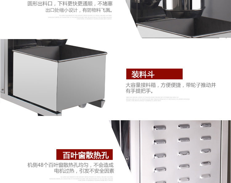 3、整機為全不銹鋼制造,耐磨,耐用,符合食品加工標準,電機采用半封閉式安裝,防塵,防燙手,衛生美觀,而且操作簡單,安全可靠。