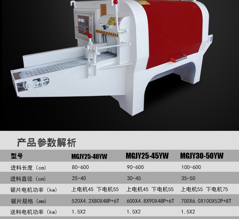 6.原木多片鋸上下軸鋸片,分?jǐn)備徢性镜拿娣e,讓鋸口更小,更省材。自動(dòng)分中,即適合中間開(kāi)方料兩邊開(kāi)片,也可全部開(kāi)片。厚度均勻,鋸切成品表面光滑平整,無(wú)需再進(jìn)行壓刨,不需要專(zhuān)業(yè)帶鋸師傅,是帶鋸效率的多倍。