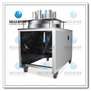 使用前將機(jī)器放置在干燥、通風(fēng)的水平地面上,確保機(jī)器工作平穩(wěn)、可靠。使用前對(duì)各部位進(jìn)行檢查,緊固件是否在運(yùn)輸途中松動(dòng),開關(guān)及電源線是否因運(yùn)輸而破損,料斗或料盒內(nèi)是否有異物。檢查電源電壓是否與本機(jī)使用電壓相符合。將電源軟線伸長(zhǎng),把帶有接地符號(hào)的黃綠線芯可靠接地,把其余三條線芯(配置單相電動(dòng)機(jī)時(shí)為兩條)分別接到開啟式負(fù)荷開關(guān)(閘刀開關(guān))斷開時(shí)的引出端子上。工作前打開前門,用手撥動(dòng)轉(zhuǎn)盤觀察是否有磕碰刀具的現(xiàn)象,如果有則將轉(zhuǎn)盤上的緊定螺栓松開,稍微向外移動(dòng)轉(zhuǎn)盤,然后緊固緊定螺栓。閉合開啟式負(fù)荷開關(guān),啟動(dòng)開啟按鈕,視切刀運(yùn)轉(zhuǎn)方向是否正確,從入料口觀察逆時(shí)針轉(zhuǎn)動(dòng)為正確,否則調(diào)整電源線,待切刀運(yùn)轉(zhuǎn)方向正確后空載試運(yùn)轉(zhuǎn),各部位無(wú)異常方可試機(jī)。
