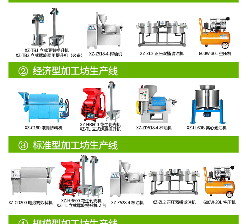 適合提升油料 | 花生、大豆、菜籽、葵花籽、亞麻籽、茶籽等,主要用于豆餅提升和裝袋,有自動破碎豆餅功能 | 花生、大豆、菜籽、葵花籽、亞麻籽、茶籽等,此提升機有豆餅破碎和提升功能,主要用于生榨和兩次壓榨 | 帶殼花生、茶籽等 |