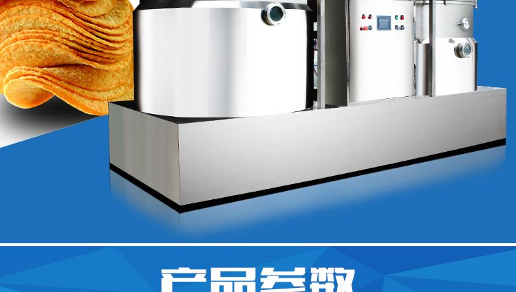 ●低溫真空油炸可以防止食用油脂劣化變質,不必加入其他抗氧化劑,可以提高油的反復利用率,降低成本。一般油炸食品的含油率高達40%~50%,而真空油炸食品的含油率在10%-20%,節油30%-40%,節油效果明顯。食品脆而不膩,可貯性能良好。