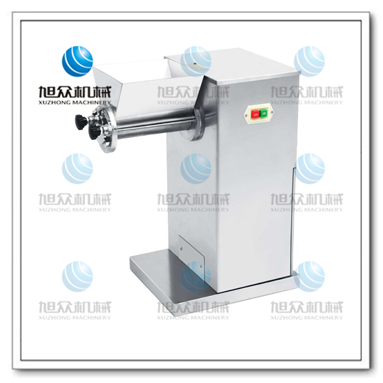 搖擺式顆粒機制得的顆粒一般粒徑分布均勻,有利于濕粒均勻干燥。它的主要特點為旋轉為旋轉滾筒的轉速可以調節,篩網裝卸容易,還可適當調節其松緊。機械傳動系統全部密封在機體內,并附有調節系統,提高了機件的壽命。但由于成粒過程是由滾筒直接壓迫篩網而成粒的,物料對篩網的擠壓力的摩擦力均較大。使用金屬篩網時易產生金屬污染處方,而尼龍篩網由于容易破損需經常更換,在使用時應加以注意。