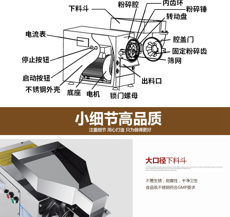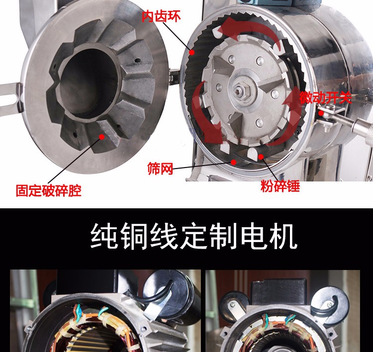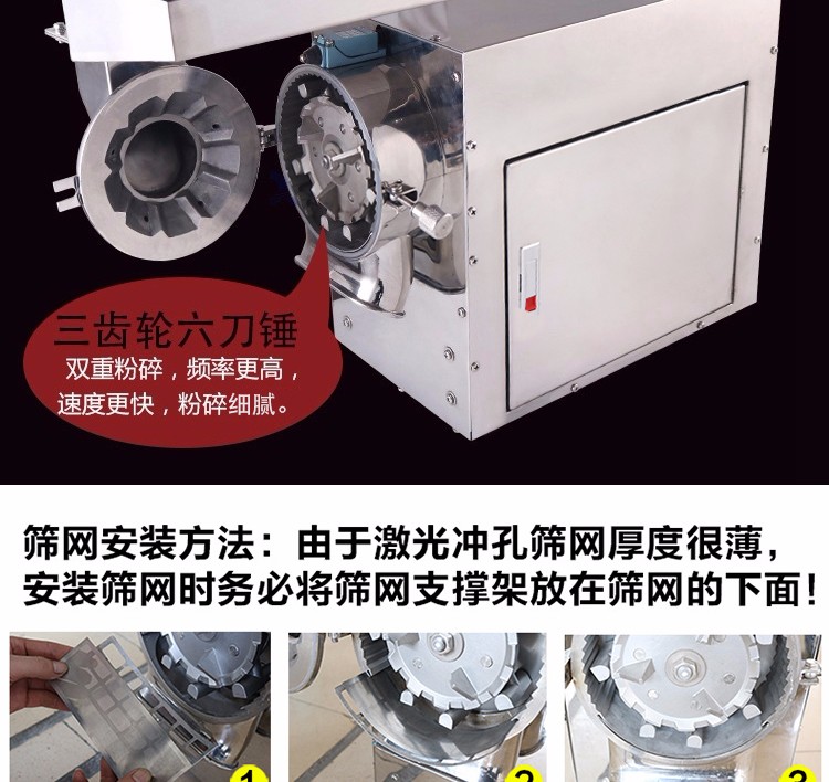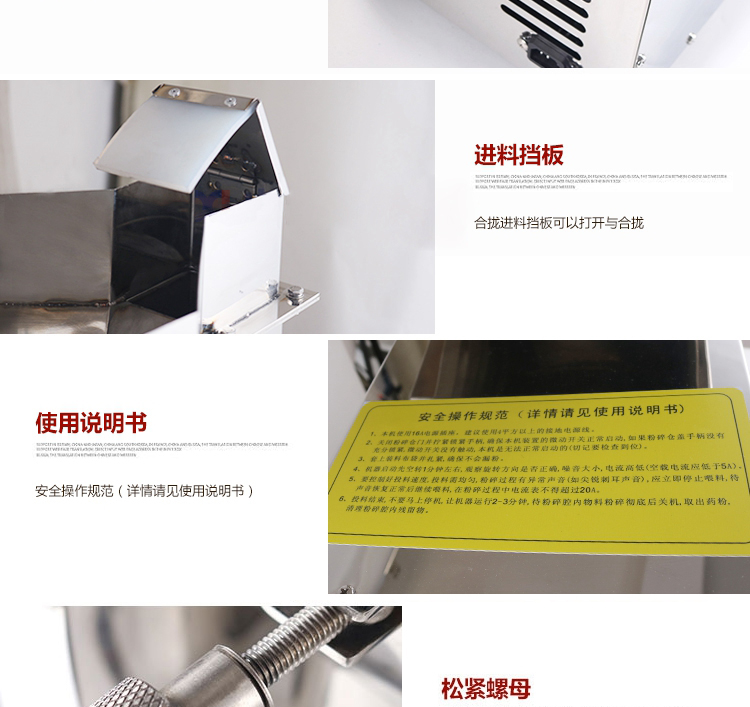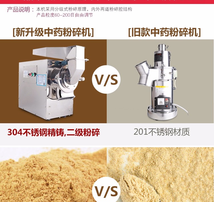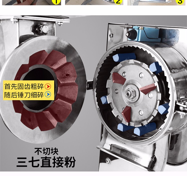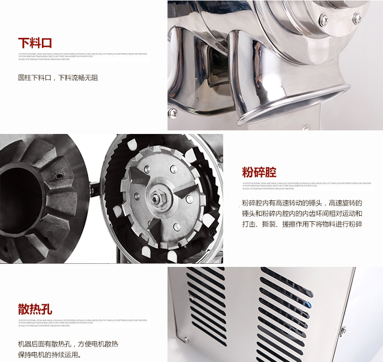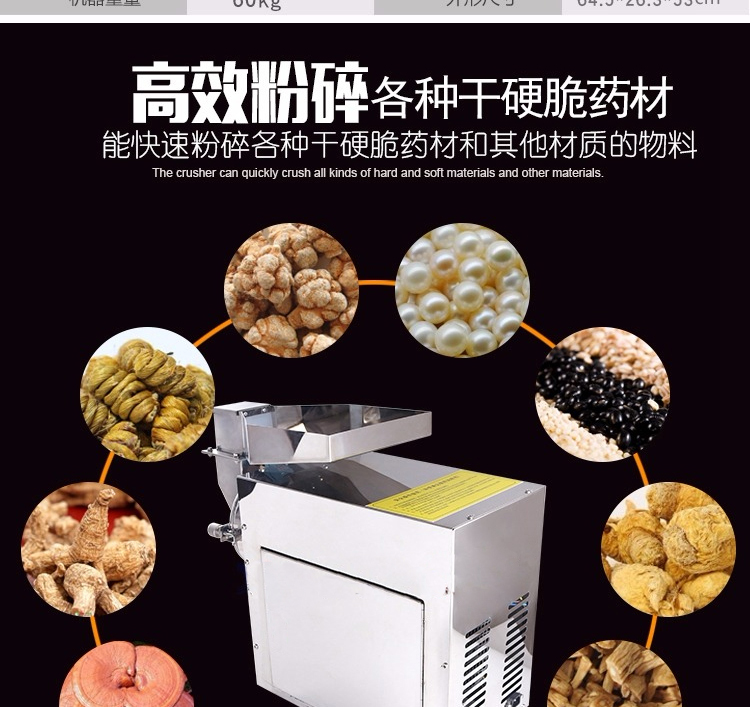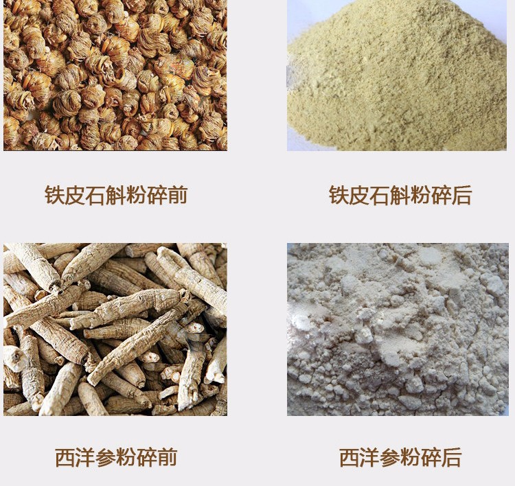 XL-60C中藥粉碎機能快速粉碎各種軟硬藥材和其他材質的物料,主要包括靈芝、西洋參、鐵皮楓斗、三七、珍珠、莖草類、礦石類、五谷雜糧、瑪卡、干燥的草本植物等(油性、濕性、粘性物料除外)。注:要直接投入的塊料尺寸不能大于40毫米。